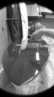 Enfin terminé, le tout premier "mini simmons" muni des dérives que j'avais shapées qui sort de l'atelier et vas tout droit à l'eau pour un "test drive"! les prochains "simmons" seront un peu plus grands et muni d'un step sur le nose, sur le top, Afin d'avoir plus de volume au centre, et de pouvoir garder un nose fin. Voila, il me semble que pour l'instant c'est le premier en france!!! Enfin je crois....!