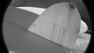 Suite au ailerons en bois que j'avais shapé en single foil, voici donc la suite, avec un projet que j'ai réalisé d'une planche pour le shop uwl, un fish: un vieux vieux shape qui trainait dans le fond de l'atelier depuis fort longtemps, shapé par louis robert au skill, je l'ai donc stratifier assez light avec une couche de 6 oz pour le bottom et le top est glassé avec une couche de 6 et une couche de 4 oz. J'ai ensuite stratifier les ailerons en bois que j'avais shapé, puis j'ai fait un ponté au dessus du swallow tail, pour le leash. Puis je me suis amusé à faire une déco à l'aéro avec inscrit dessus: "MA PLANCHE EST UN...POISSON!" bref voila un joli twin pour le shop.
