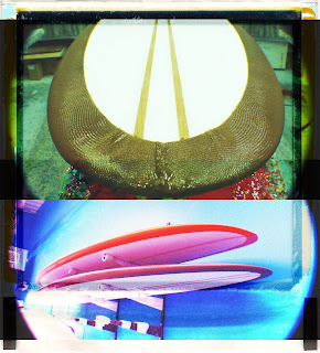 Lors de la session d'hier soir dans l'ile de ré, j'ai essayez une vieille planche qui trainait depuis des années dans le fond de la salle de ponçage, un magnifique trusther, une "coral sea" avec gros travail d'aéro, est un shape trés trés épais, le volume étant particulièrement réparti sur le tail, et avec tail trés large et des wingers. Une fois à l'eau aprés une rame trés agréable le surf ne fut pas trés concluant je suis donc sortis de l'eau pour prendre mon fish, mais je pense que dans des vagues plus consistante avec plus de vitesse cette planche peut faire l'affaire, donc à voir...