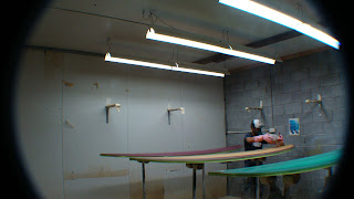 Ce n'est que de la planche blanche mat, mais ils avait besoin desesperement d'un ponceur, et puis sa ma fait de la monnaie 25 dollars la shortboard avec plugs, et 30 dollars quand c'est des glassons, bon premiere semaine que des glassons!!!! j'en ai bouffe! 8 planches avec glassons par jour!!! mais sa ma fait une semaine a 1000 dollars. bref une tres bonne rencontre!! Et en parallele je continuais a travailler chez juan pour faire des bonzer 5 (avec encore des glassons!!lol!).